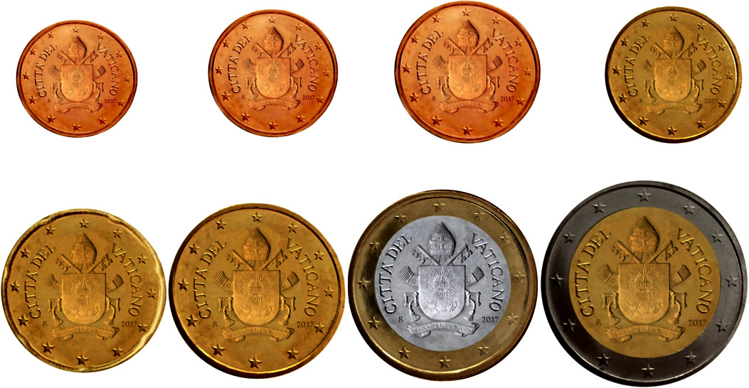 El pasado 17 de enero os adelantaba que Vaticano cambiaría sus monedas de circulación, tras expresar el Papa Francisco su deseo de no figurar en las mismas. Entonces os hice un montaje de la imagen de cómo serían las monedas, hoy tras la publicación por parte del Diario Oficial de la Unión Europea de la aprobación de este cambio, os dejo con la imagen oficial de las nuevas monedas Vaticanas y su descripción, que nos sirve para los ocho tipos ya que en todos figura el mismo motivo, el escudo del Pontífice.
