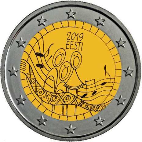 El Banco de Estonia sometió a votación, desde el pasado 12 de febrero hasta el 4 de marzo, ocho diseños realizados por niños y jóvenes del país, donde el ganador vería plasmado su proyecto en una moneda de 2 euros conmemorativa para celebrar el «150 aniversario del Festival de la Canción de Estonia» a celebrar en 2019, hoy ya conocemos el ganador.