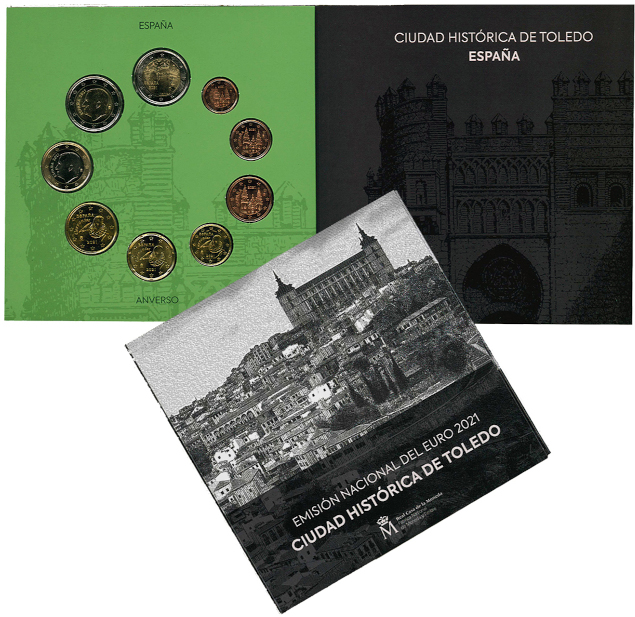 Este año el diseño de la cartera está dedicada al mismo motivo que la moneda de 2 euros conmemorativa, que dentro de la serie Patrimonio Mundial está dedicada a la Ciudad Histórica de Toledo, conocida como la «ciudad de las tres culturas» pues conserva extraordinarios testimonios de diferentes civilizaciones ya desaparecidas a los largo de dos milenios. Toledo fue sucesivamente un municipio romano, capital visigoda, formó parte del Emirato de Córdoba, un lugar determinante en la Reconquista cristiana y sede temporal de la corte durante el reinado de Carlos V. Su apariencia actual se debe a la superposición de todas estas influencias y a la coexistencia de tres grandes culturas: judía, islámica y cristiana.