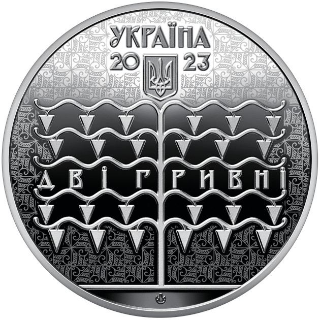 En el anverso de la moneda podemos observar, al fondo, un adorno diseñado por el artista, una inscripción en la parte superior con el grabado УКРАЇНА (Ucrania), y debajo, un pequeño escudo estatal ucraniano, el año de acuñación: 2023; en el centro, un «árbol de la vida» decorativo, elemento que aparece en la tarjeta de crédito estatal de Ucrania, y el valor facial de la moneda ДВІ ГРИВНІ (dos grivnas). Y por último, más abajo, la marca de ceca de la Casa de la Moneda del Banco Nacional de Ucrania.