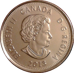 Anverso común a todas las monedas de 25 centavos de Canadá.