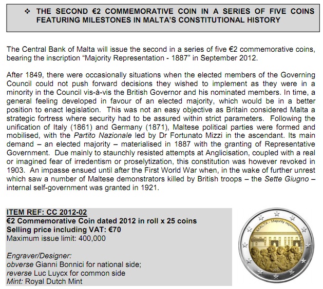 Hoja 2 euro conmemorativa Malta 2012