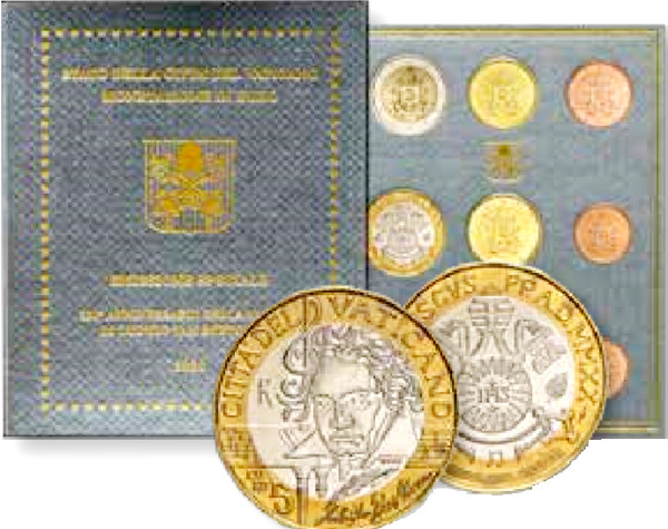 Contiene los ocho valores regulares 2020 más una moneda de 5 euros bimetálica alusiva al «250° aniversario del nacimiento de Ludwig van Beethoven» .