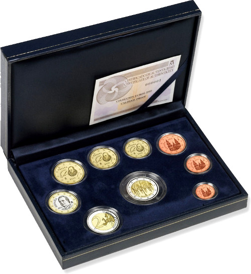 Un máximo de 25.000 carteras o eurosets con las ocho monedas de circulación regulares del año en curso, más la moneda de 2 euros conmemorativa, se pusieron a la venta al precio aproximado de 25€.