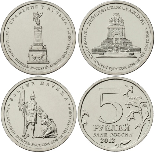 Rusia 3 monedas 5 rublos 2012